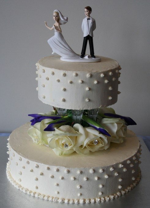 Was the wedding cake a success? I grimace at the question – I was not entirely happy with it. Or should I rephrase and say that it just didn’t look exactly how I imagined it would. Some of it was out of my control – the avalanche roses and blooming blue irises that were meant to wedge the two tiers together in a statement of floral opulence were left out of water overnight by the florist. And so when I got them, the few I could use were so wilted they couldn’t hold their shape, let alone fill the gap between the two tiers. This also meant that the tiny imperfections at the bottom of the top tier were very visible. I had hoped they would be hidden behind big curling petals, but alas.