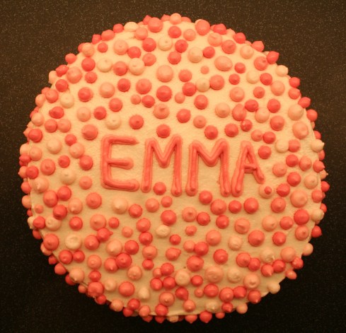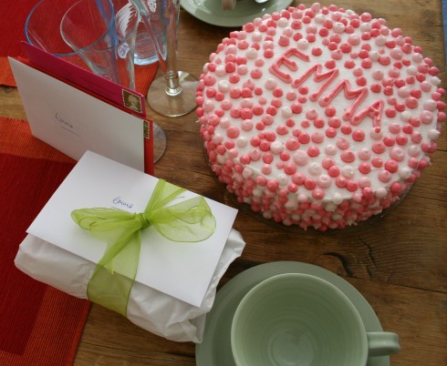 It was her birthday this last weekend – and so this cake is for her. Although rather gaudy, it’s a fun cake of decadently rich chocolate sponge, smothered in a white chocolate, vanilla and sour cream ganache – and finished with a light marshmallow meringue frosting (in various shades of pink).
