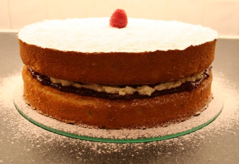 I’ve only just about managed to get the stickiness off my revolting rented linoleum kitchen floor. In the franticness that led up to the completion of the cake all manner of meringue, cake mixture, sugar, eggs and frosting ended up splattered and trampled into the floor.