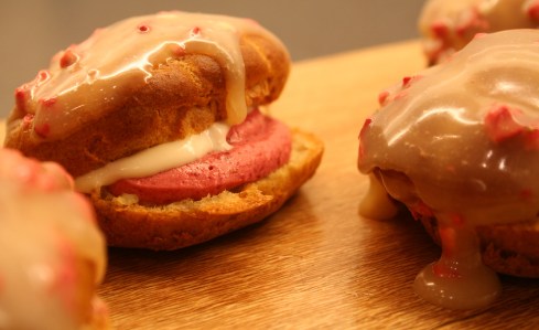 This post was supposed to be called strawberry cream puffs… light, airy choux buns filled with a perfectly balanced pungent strawberry cream, and topped with a white chocolate and strawberry ganache. Delicate, delicious, summery morsels. But not all my baking adventures end as I intend. I think as a rule baking lends itself very well to recipes turning out as they should – they are precise formulas that if followed exactly usually produce the desired result.