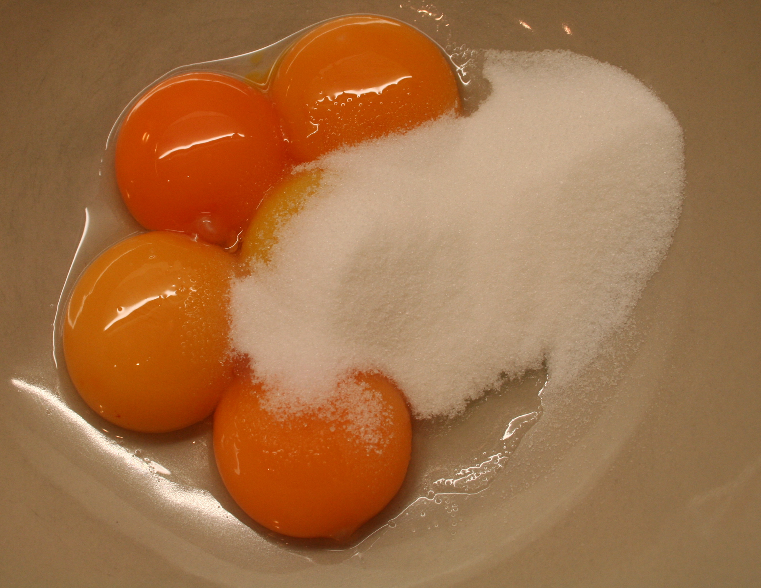 Although in principle custard, crème pâtissière contains flour to thicken it. While the dough is chilling begin making the crème pâtissière by gradually beating the sugar into the egg yolks in a bowl with an electric mixer. Once combined continue beating for 2 to 3 minutes until the mixture is pale yellow and runs off the mixer in a ribbon stream. Slowly beat in the flour.