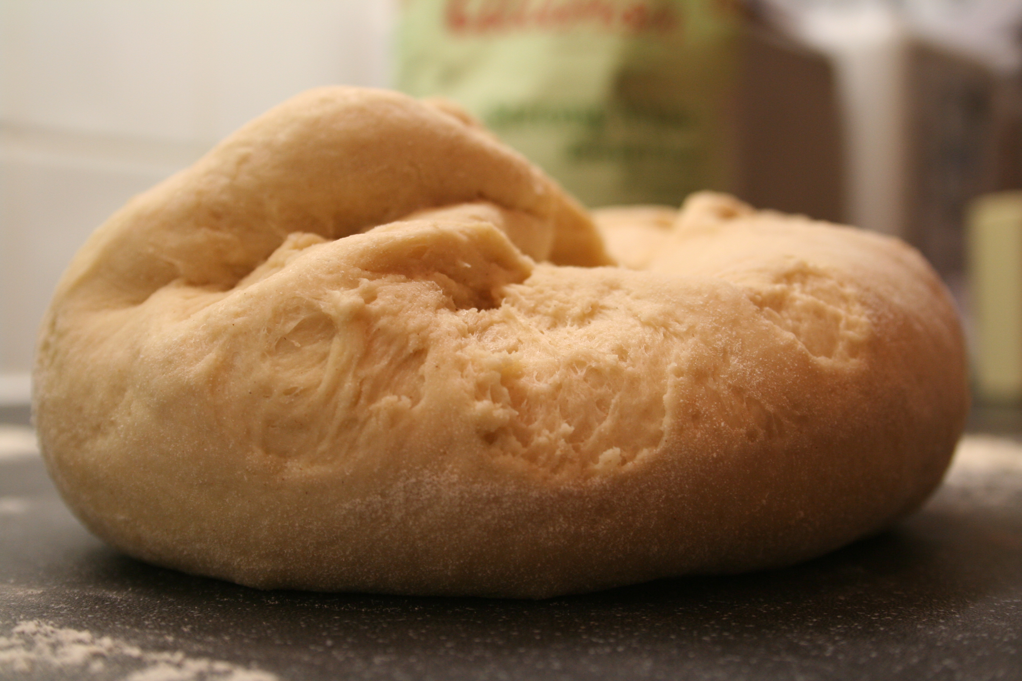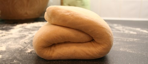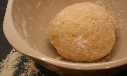 Once combined turned the mixture out onto a very lightly floured work surface and knead for about a minute. The best way to do this is to knead the dough by pulling and stretching it out with both hands, then lifting both ends up and bringing them down together in the middle with a slapping motion. This will trap some air into the mixture. Put the mixture back into the bowl, cover with cling film and leave to rest in a warm place for 15 minutes.