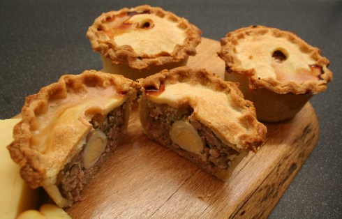 Gently pour the gelatine stock into the hole in the top of each pie until the hollow cavity within the pie is filled. Allow the pies to set in the fridge overnight.