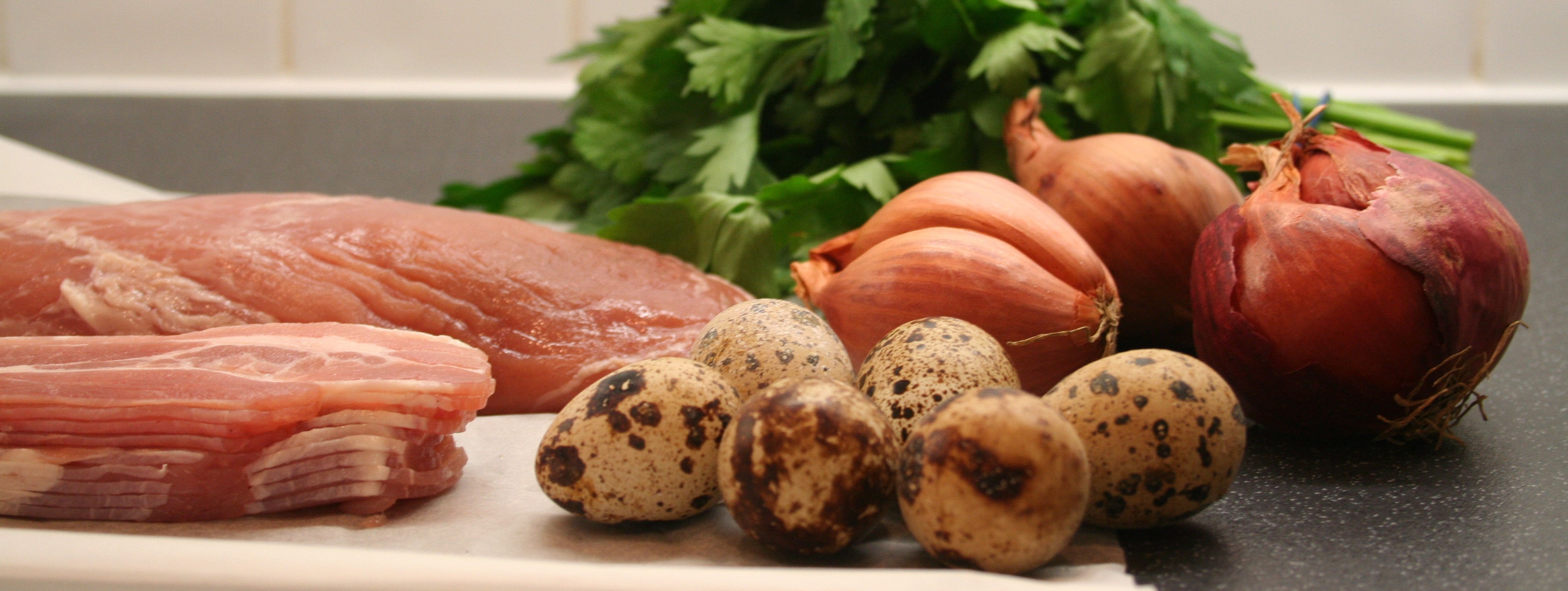 Put the finely chopped shallots, pork, bacon and parsley into a bowl, season with salt and freshly ground black pepper and mix well until combined.