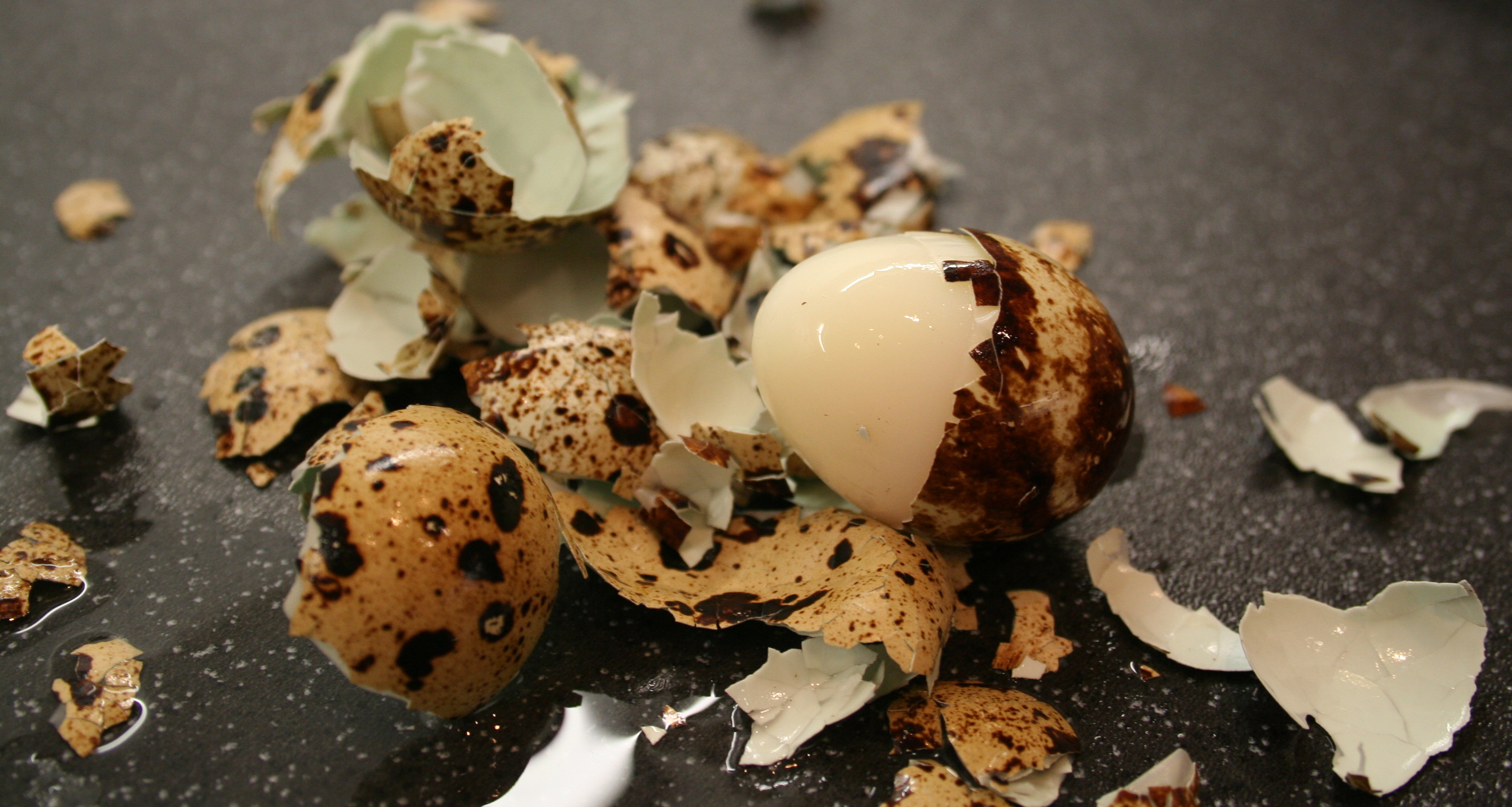 For the filling, cook the quail eggs in a saucepan of boiling water for 2 minutes. Place immediately in cold water to stop them cooking further and once cool, peel carefully and set aside.