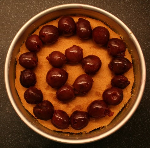Place another layer of genoese sponge onto of the meringue and cover it with a layer of cherries.