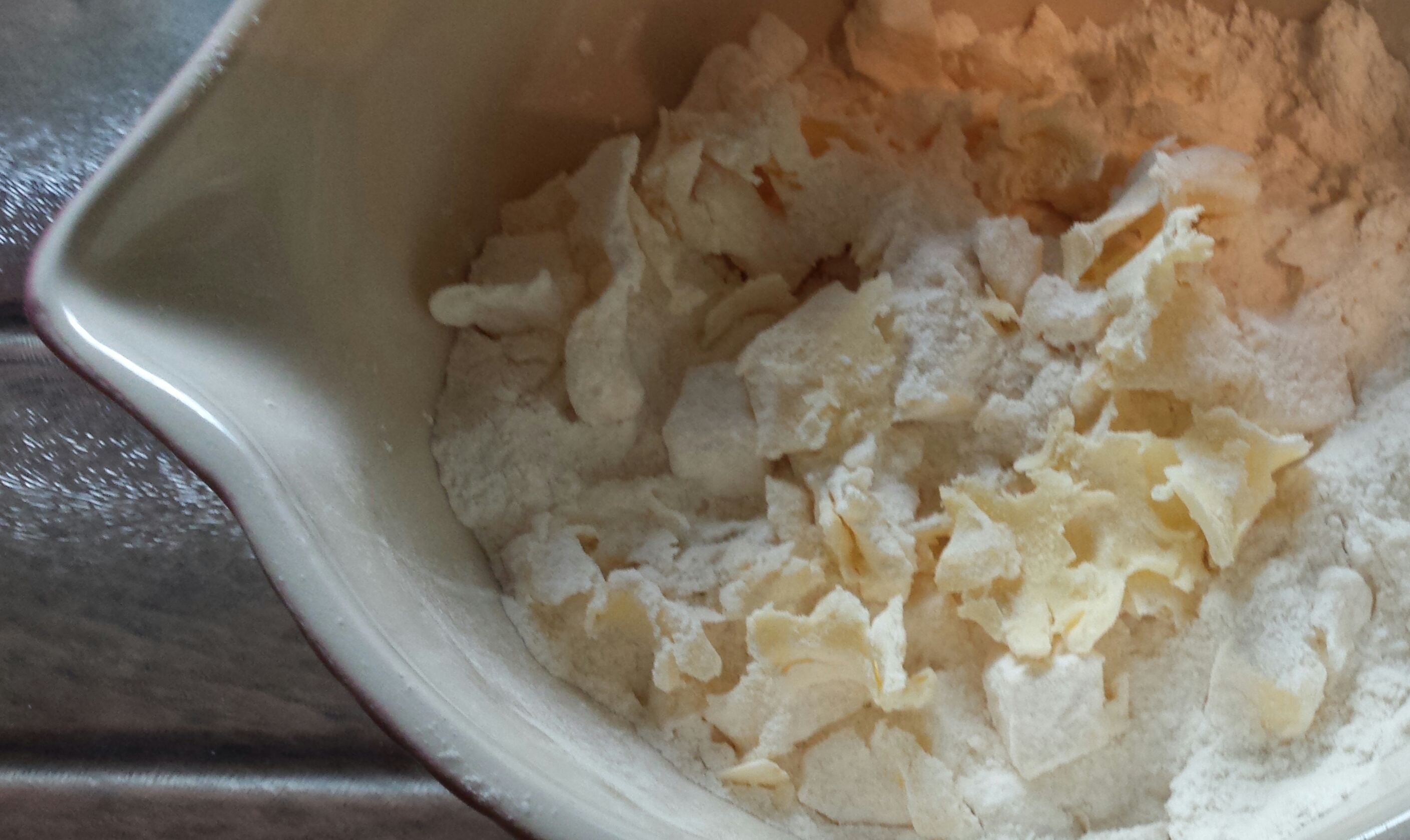 Sift the flour into a large bowl and make as big a well in the middle as you can. Sift the icing sugar and salt into the well. Cut the chilled butter into small cubes and add to the icing sugar. With your fingertips gently cream the butter into the icing sugar. Add the egg yolks and work them gently into the sugar butter mixture with your fingertips.